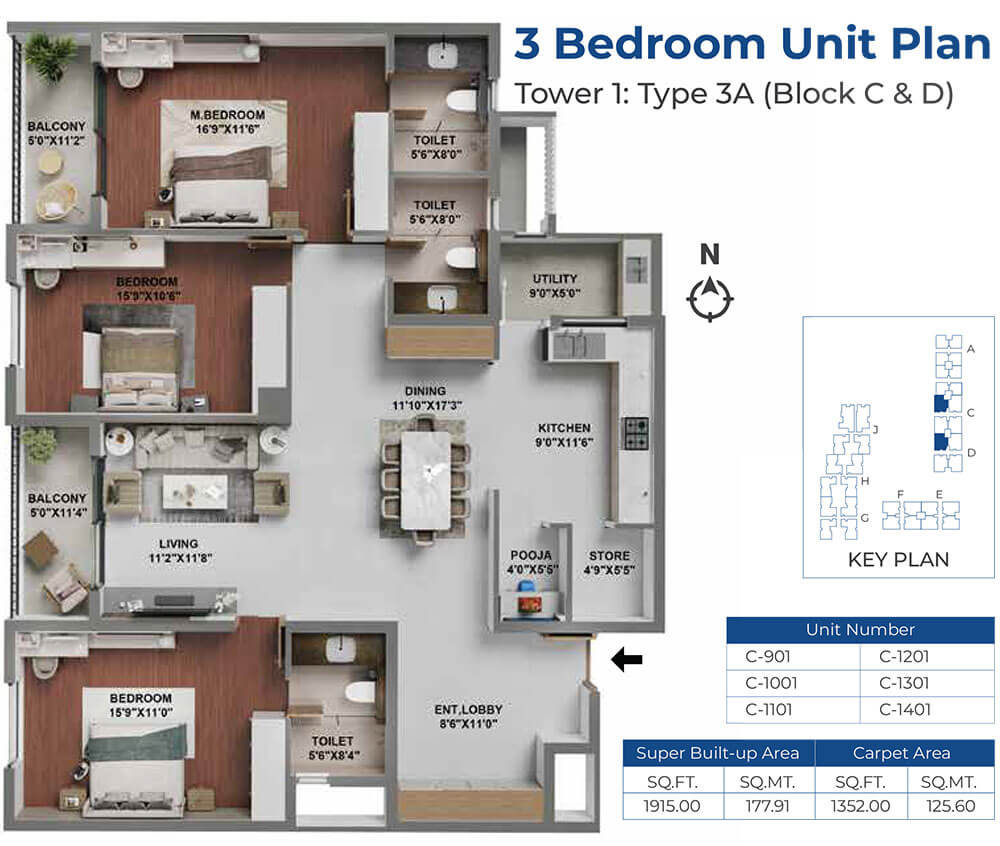 | 3 BHK | 1915 - 2235 Sqft | N/A | ₹ 3.54 - 4.30 Cr |