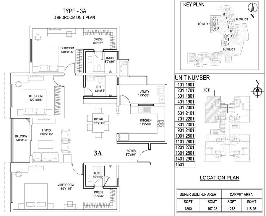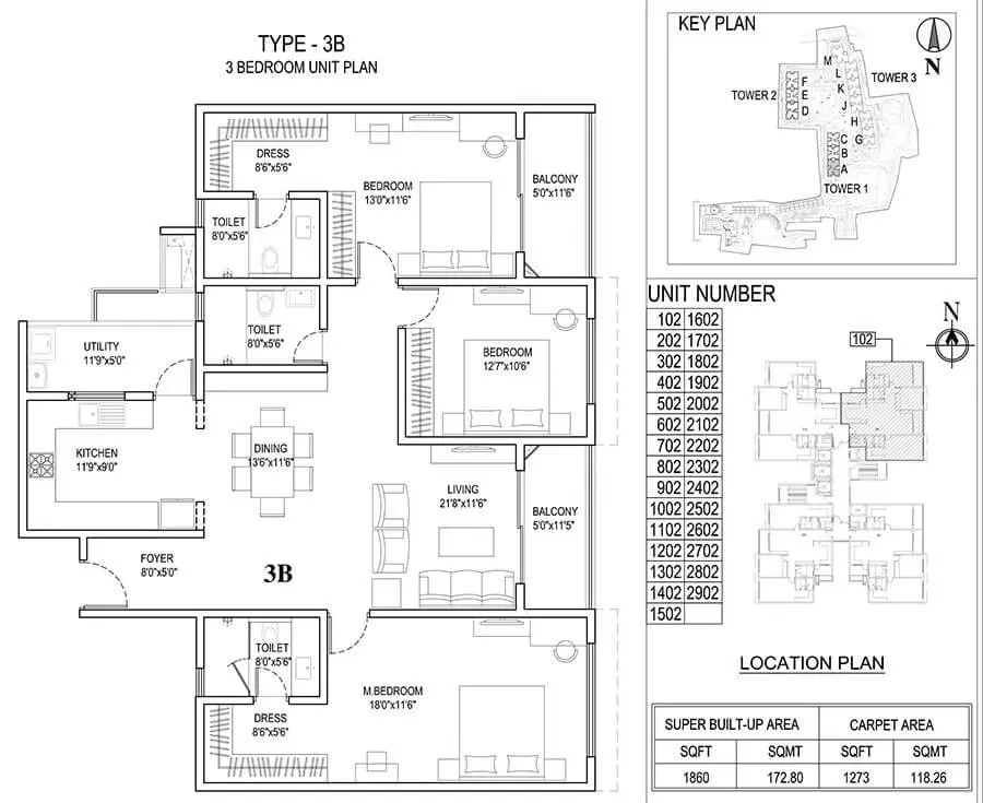 | 3 BHK | 1800 - 1860 Sqft | N/A | ₹ 1.71 - 1.77 Cr |