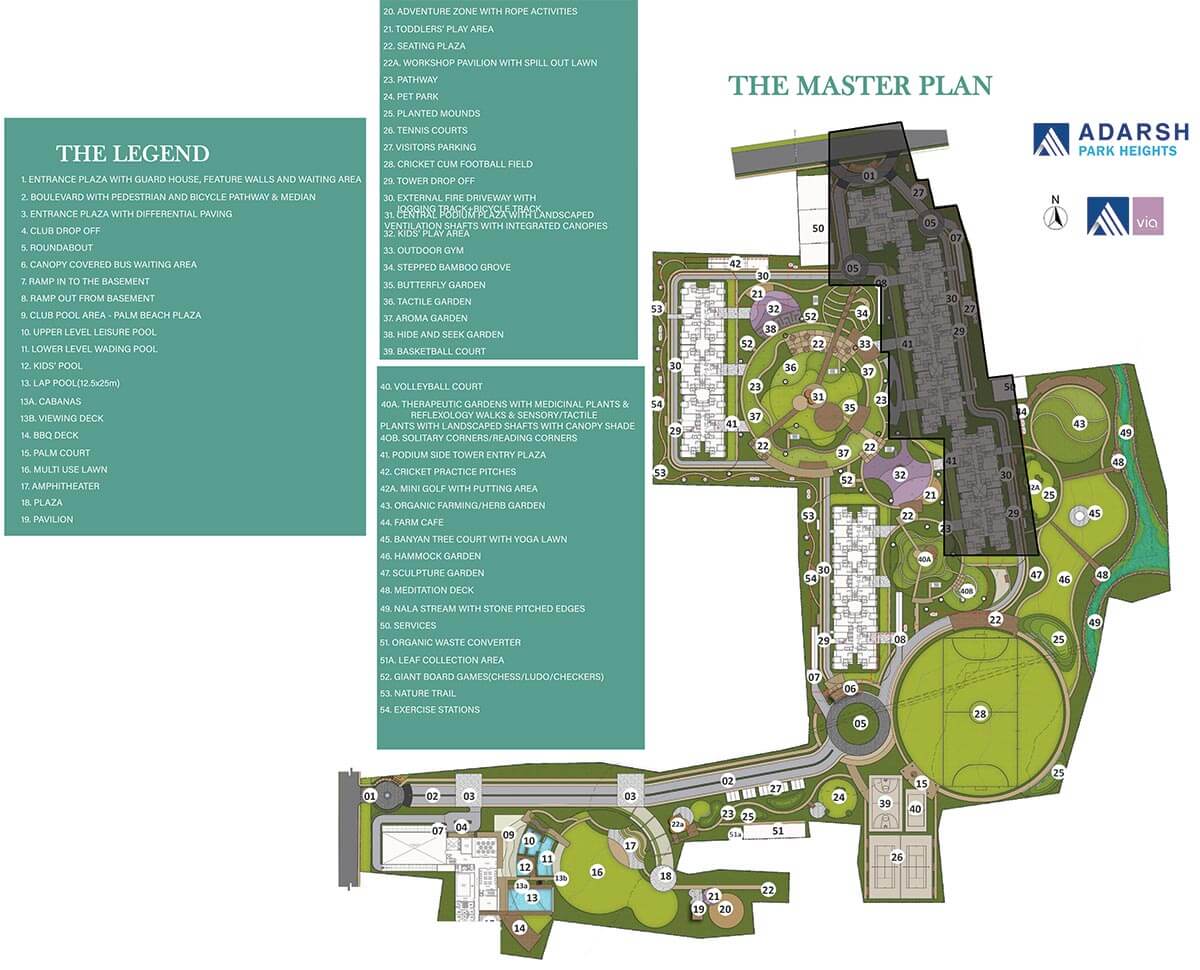 Some of the Amenities at Adarsh Park Heights include a fully equipped clubhouse, landscaped gardens, gymnasium, swimming pool, recreation rooms, sports courts, children’s play area, party hall, and meticulously planned with utmost importance to state-of-the-art 24/7 securities.