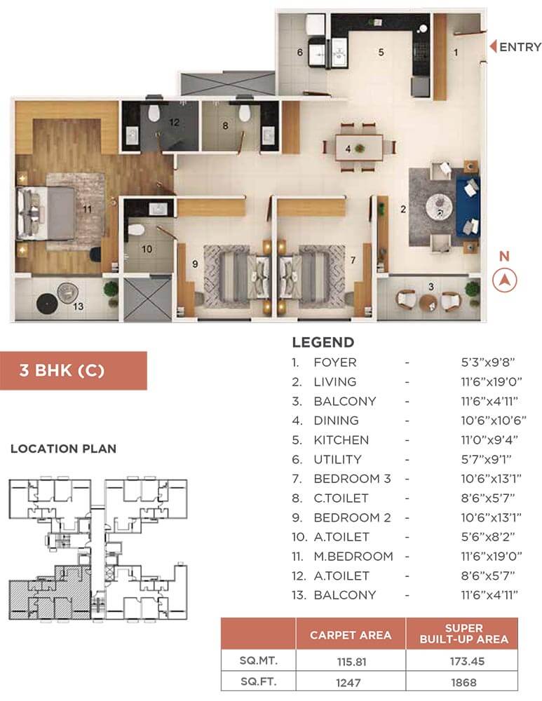 | 3BHK | 1810 - 1900 Sqft. | N/A | ₹ 1.89 - 1.98 Cr |