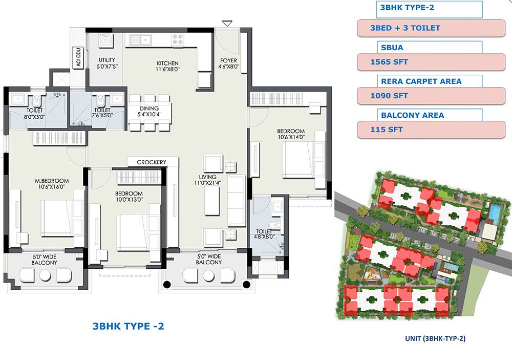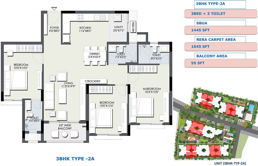 | 3 BHK | 1445 - 1565 Sqft | N/A | ₹ 95.37 Lacs - 1.03 Cr |