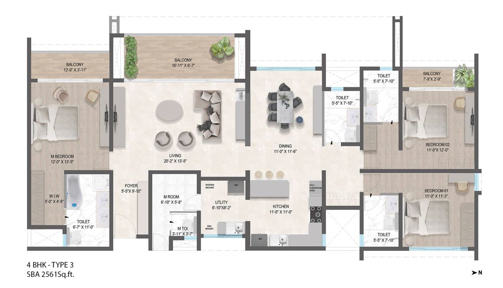 | 4 BHK | 2531 - 2561 Sqft | N/A | ₹ 2.85 - 2.88 Cr |