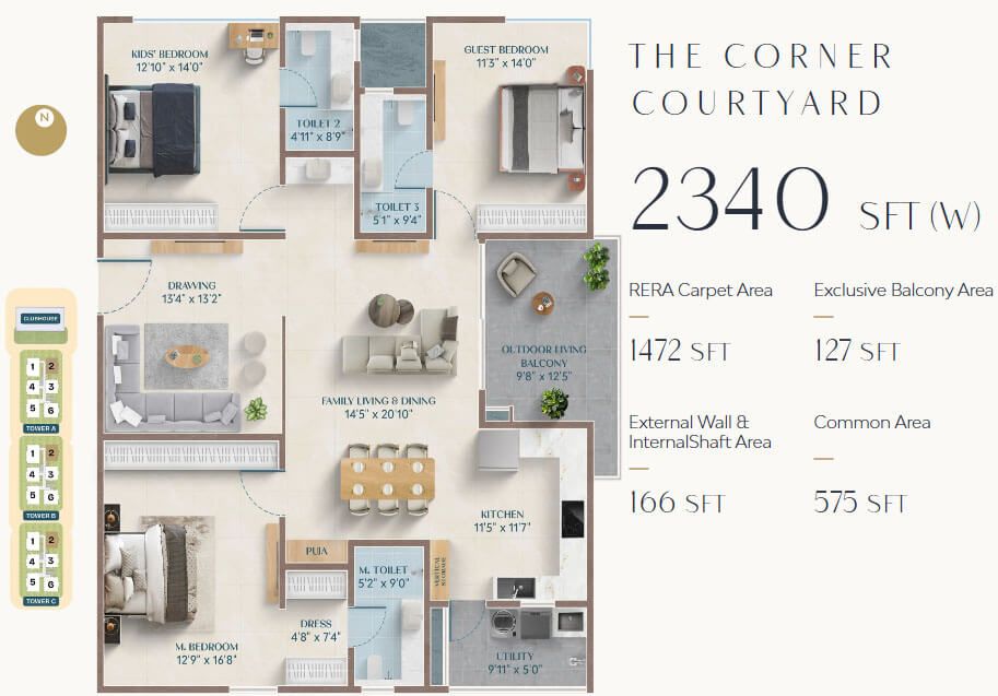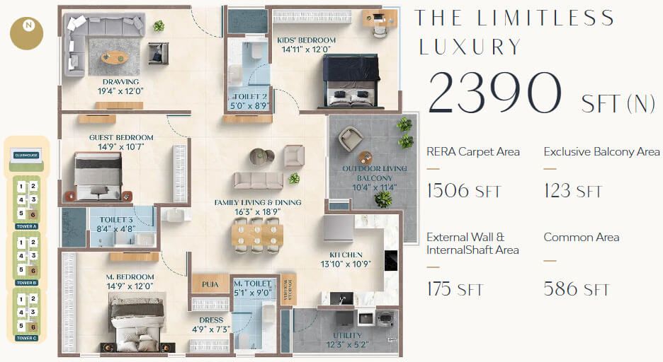 | 3 BHK | 2035 - 2650 Sqft | N/A | ₹ 1.99 - 2.56 Cr |