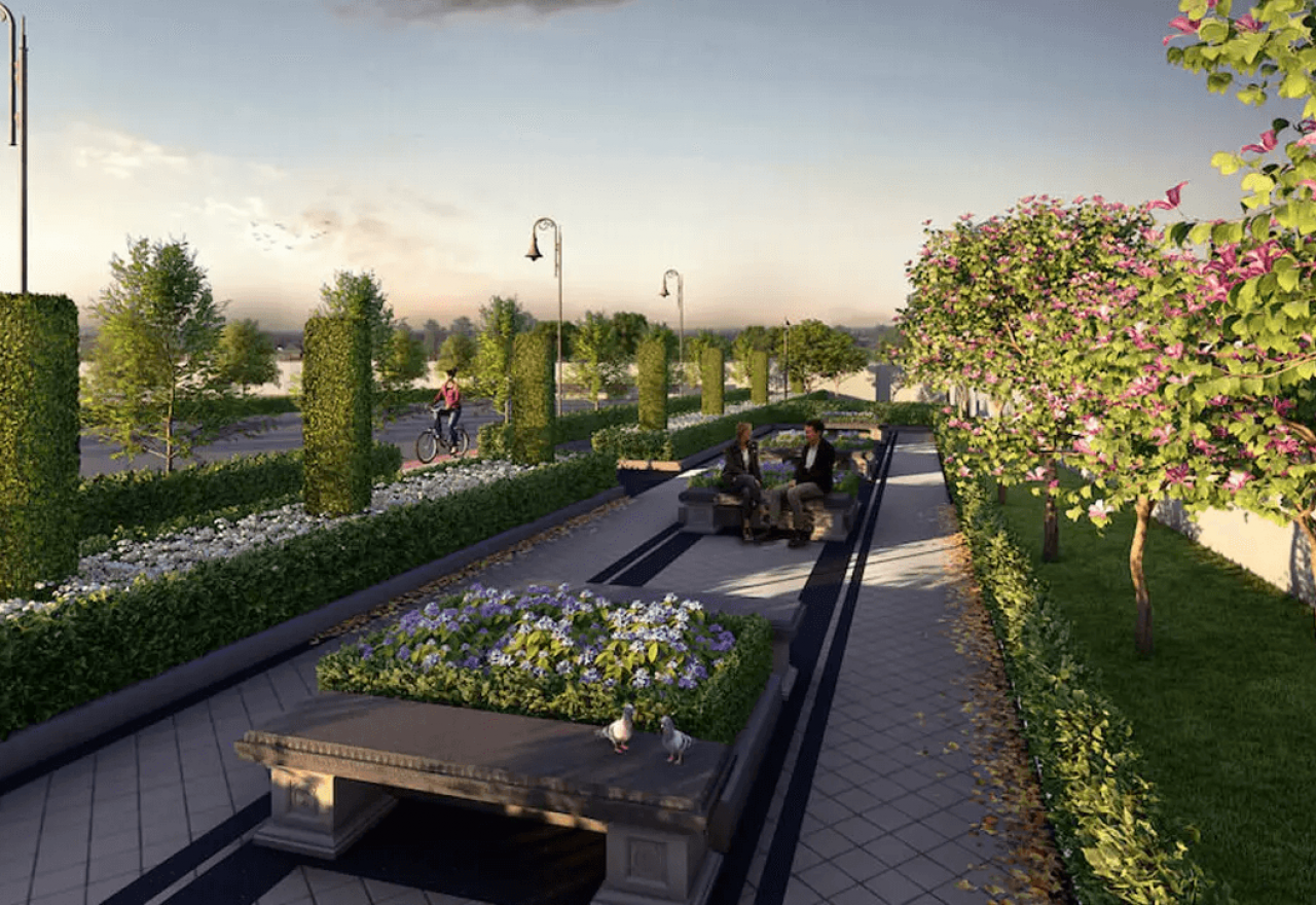 Urban garden areas across the project area with Sustainable trees for each plot.