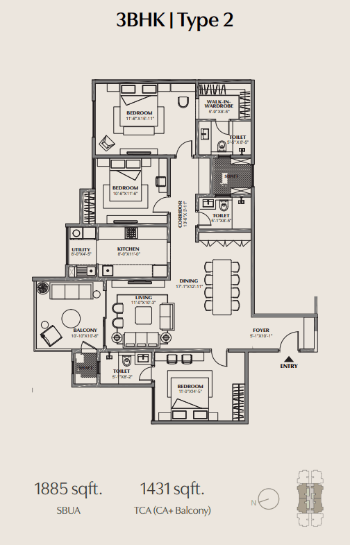 | 3 BHK | 1826 - 1885 Sqft | N/A | ₹ 2.25 Cr Onwords |