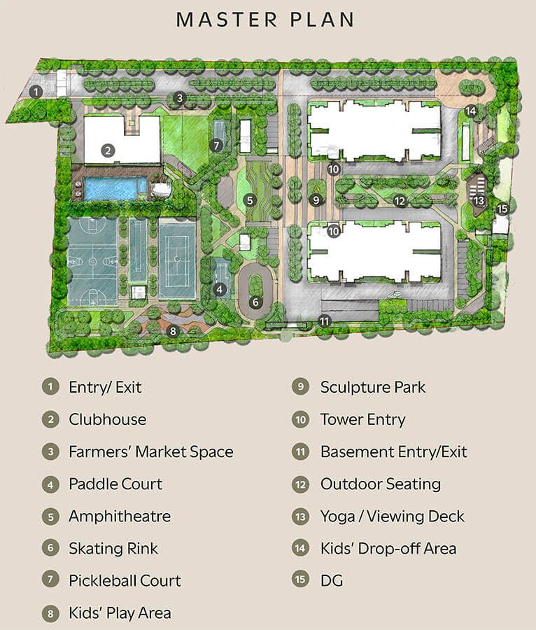 DG Power backup – 50% of EB load for inside the apartments & 100% backup for common area, lighting, lifts, and utilities.
