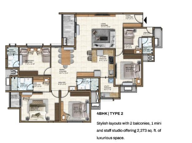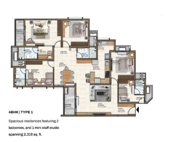 | 4 BHK | 2273 - 2316 Sqft | N/A | ₹ 3.44 - 3.65 Cr |
