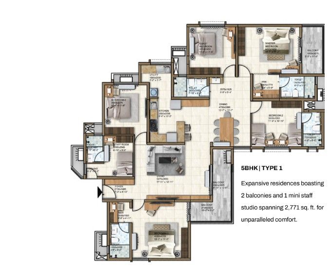 | 5 BHK | 2719 - 2771 Sqft | N/A | ₹ 4.31 - 4.39 Cr |
