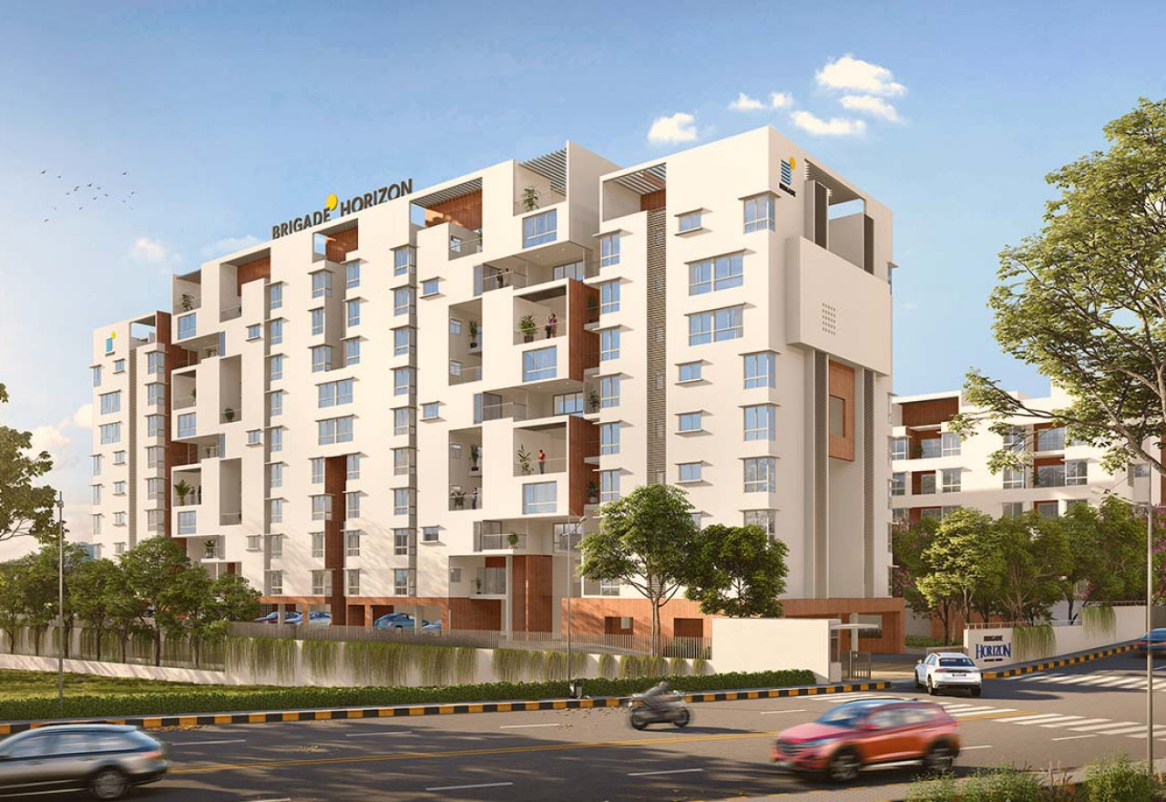Some of the Amenities at Brigade Horizon include a fully equipped clubhouse, landscaped gardens, a gymnasium, a swimming pool, recreation rooms, outdoor sports courts, a children’s play area, party hall, and meticulously planned with utmost importance to state-of-the-art 24/7 securities.