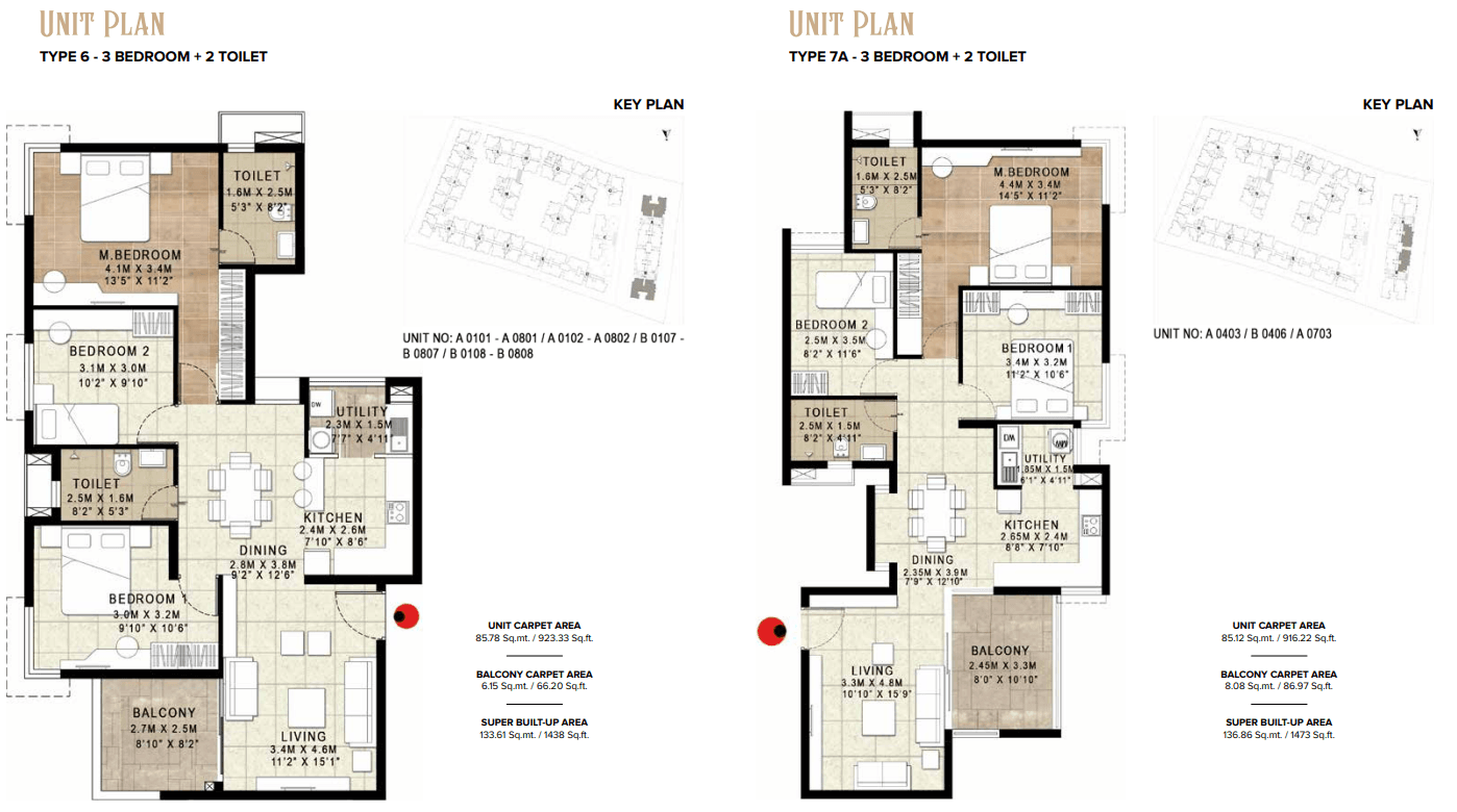 | Unit Type | Saleable Area | RERA Carpet Area | Price |