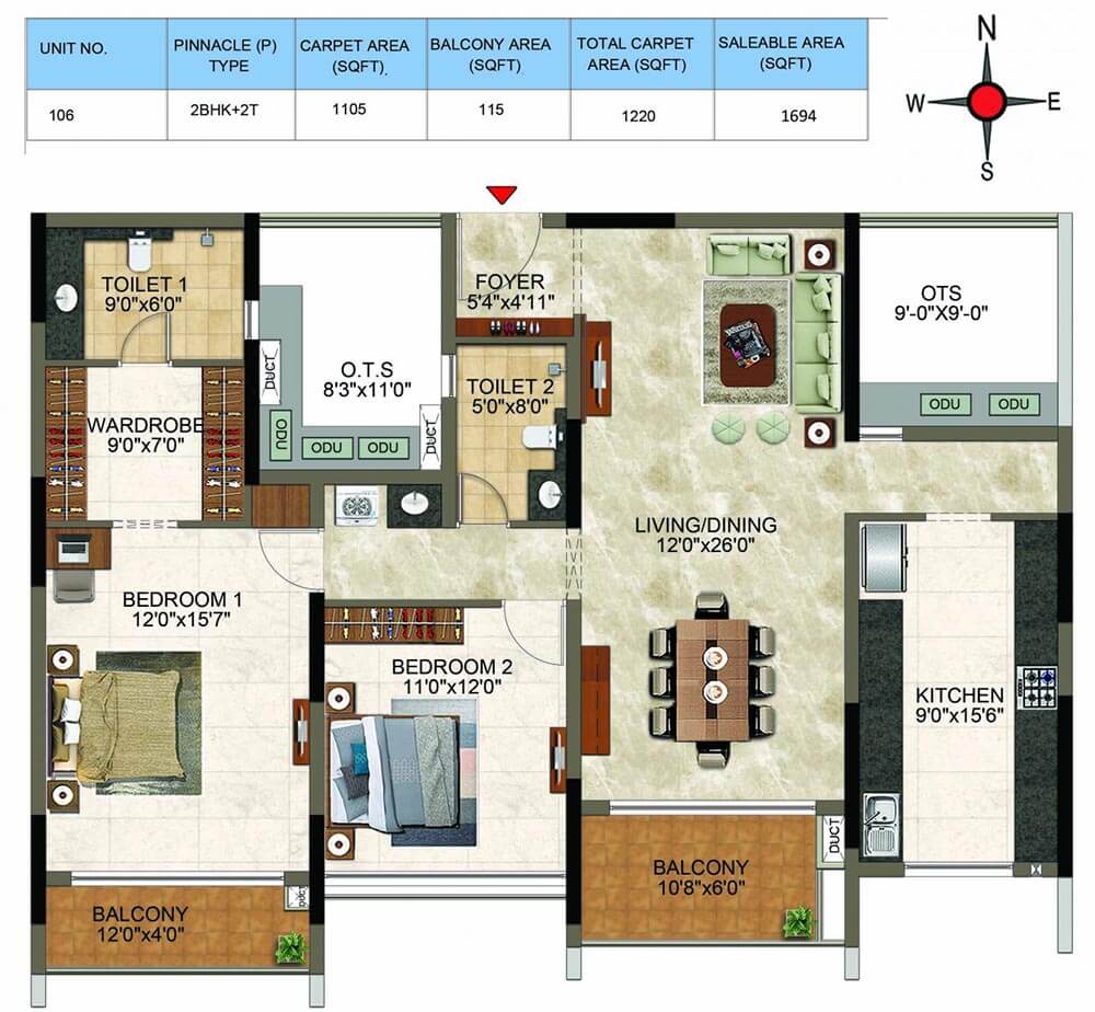| Unit Type | Saleable Area | RERA Carpet Area | Price |