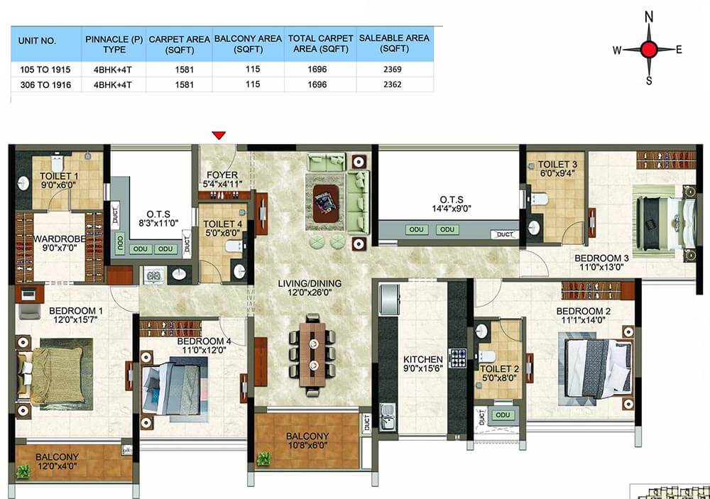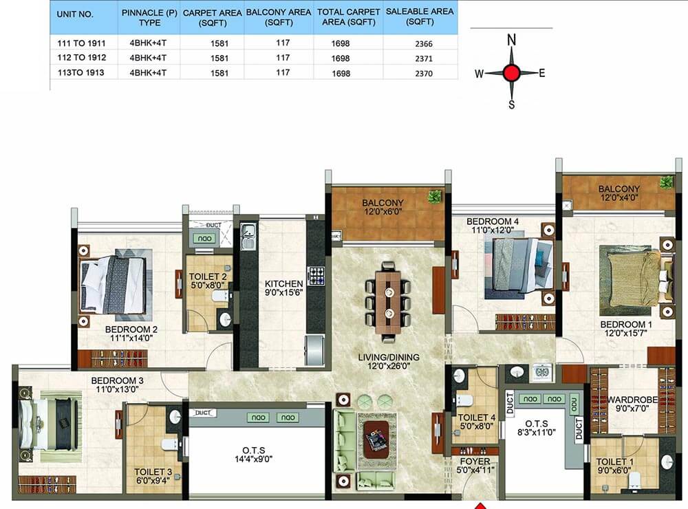 | 4 BHK | 2371 - 3621 Sqft | N/A | ₹ 1.56 - 2.65 Cr |