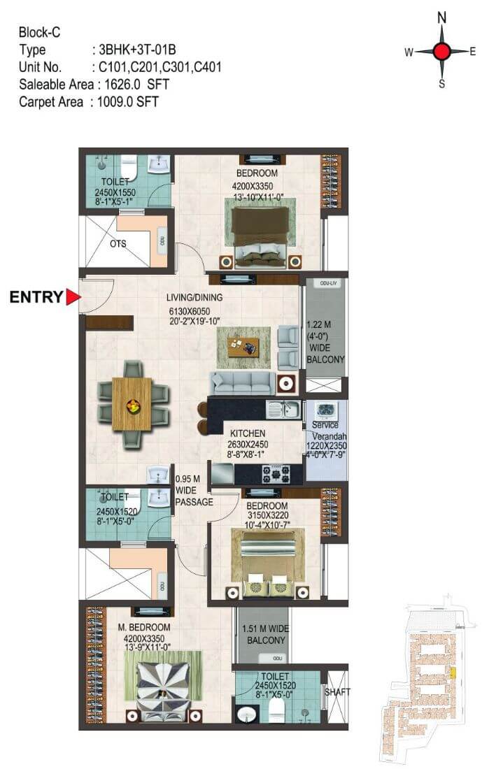 | Unit Type | Saleable Area | RERA Carpet Area | Price |