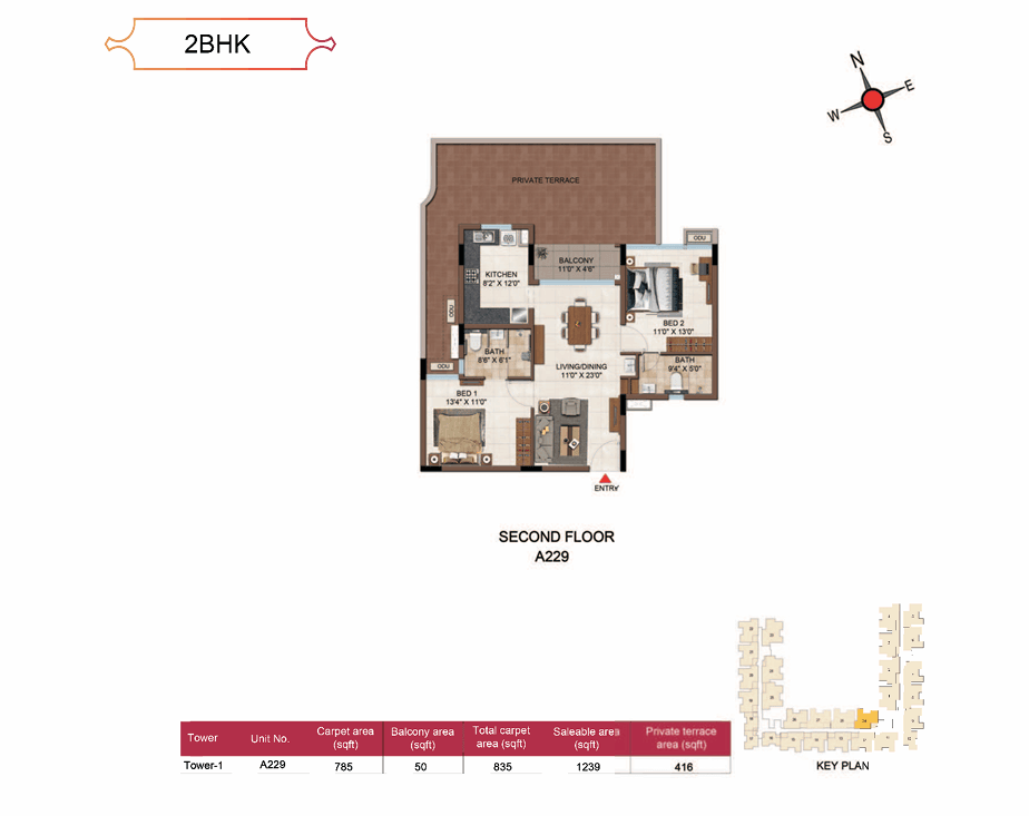 | 2 BHK | 1234 - 1312 Sqft | N/A | ₹ 85 - 90 Lacs |