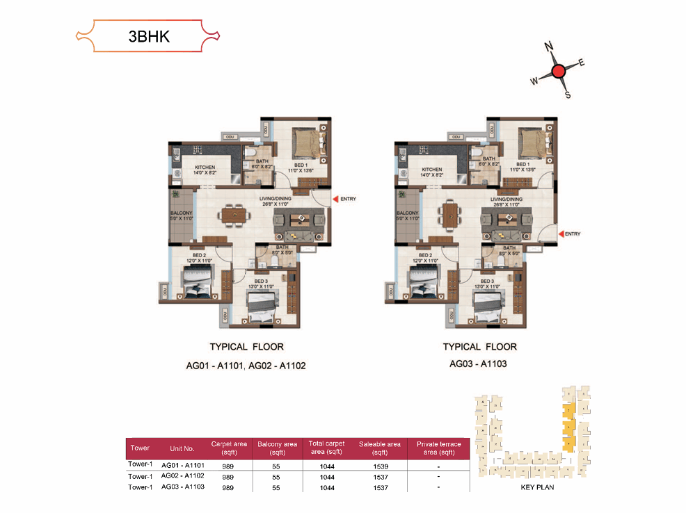 | 3 BHK | 1539 - 1543 Sqft | N/A | ₹ 1.06 - 1.09 Cr |