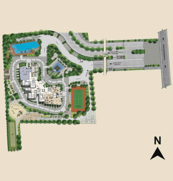 Amenities at Chaithanya Sankhya include The Oasis, which features a fully equipped clubhouse, jogging area, swimming pool, gymnasium, outdoor tennis courts, children’s play area, party hall, and meticulously planned with utmost importance to state-of-the-art 24/7 security.