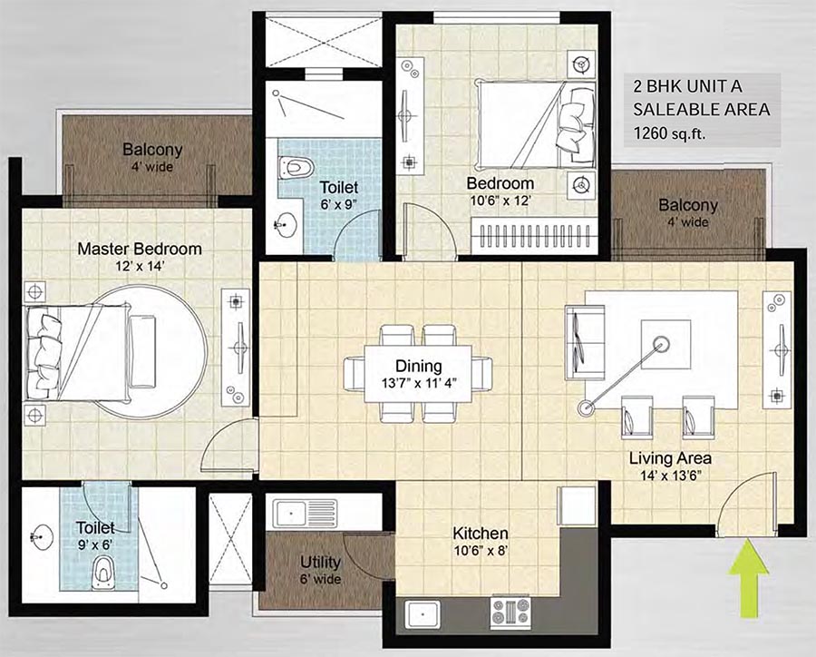 | 2 BHK | 1260Sqft | N/A | ₹ 1.65Lacs on wards |