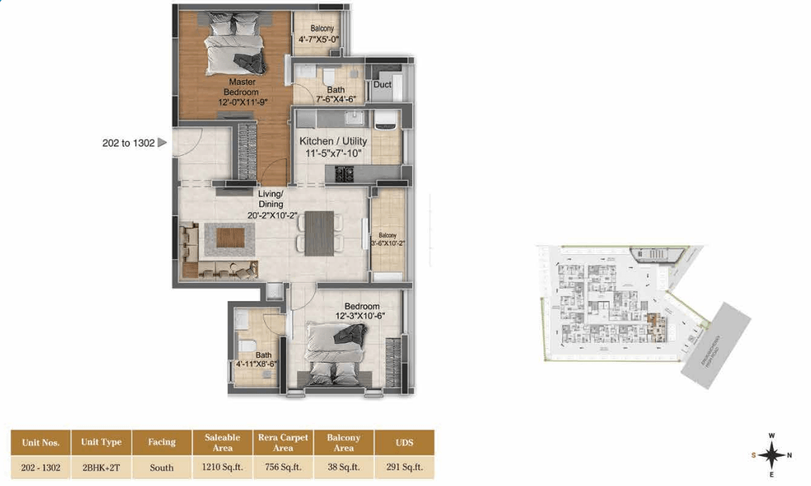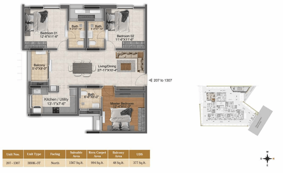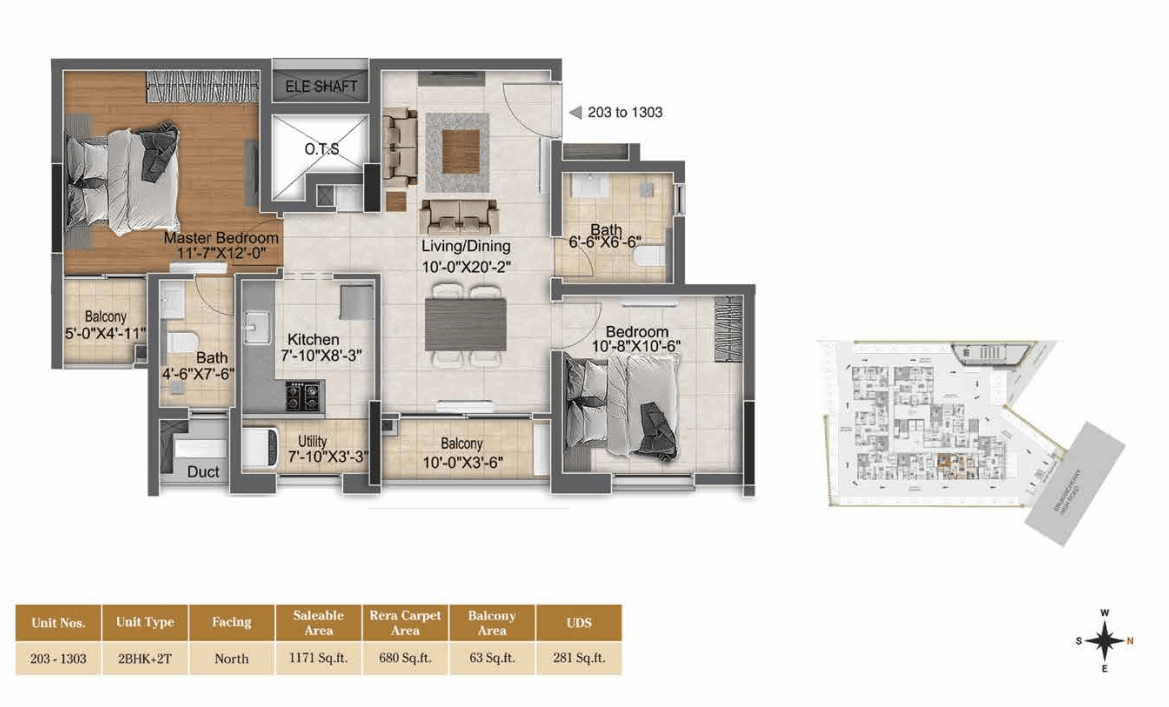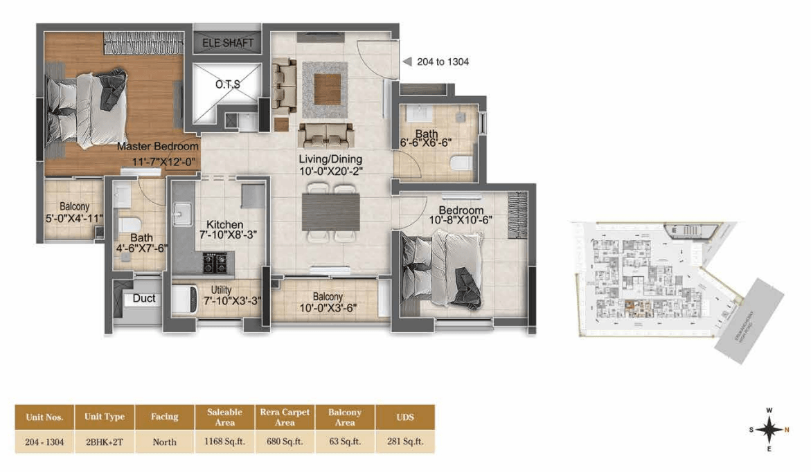 | 2 BHK | 1168 Sqft | N/A | ₹ 1 Cr |