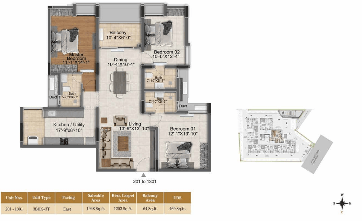 | 3 BHK | 1350 - 1948 Sqft | N/A | ₹ 1.55 - 1.60 Cr |