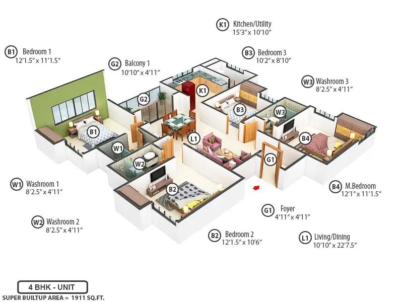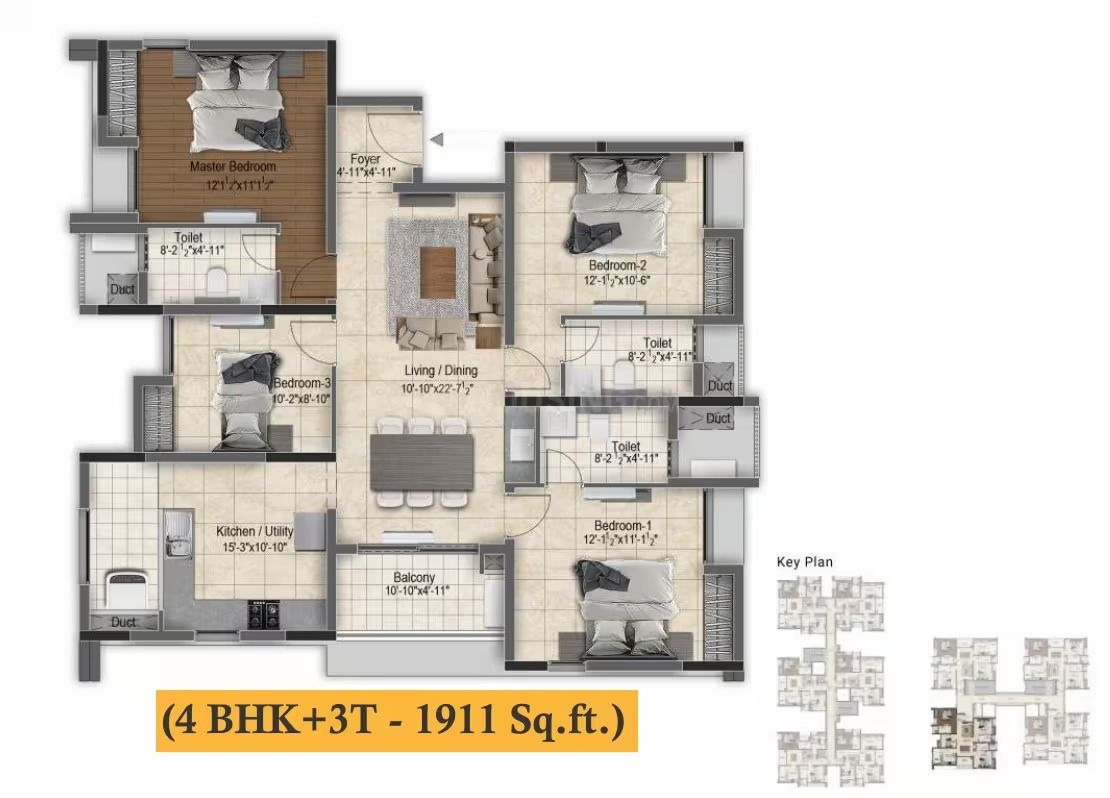 | 4BHK | 1911 Sqft | N/A | ₹ 1.88 Cr |