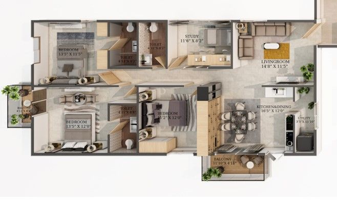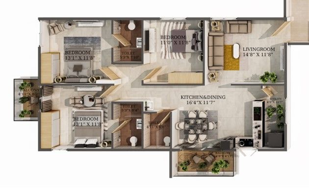 Elegant Atmos offers a mix of 3 & 3.5 BHK premium apartments, designed for different size families, professionals and individuals looking for a luxurious living space in a prime location. Each apartment is designed with a focus on maximizing space and ensuring optimal ventilation and natural light. All apartments at Elegant Atmos are designed to be Vaastu compliant, ensuring that residents enjoy peace, prosperity and good health in their homes.