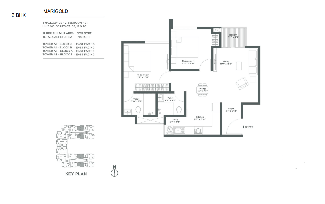 | 2 BHK | 971 - 1112 Sqft | N/A | ₹ 91.23 Lacs - 1.08 Cr |
