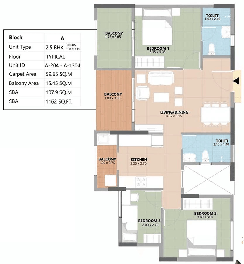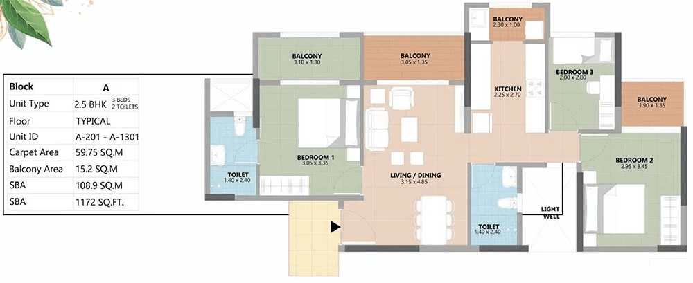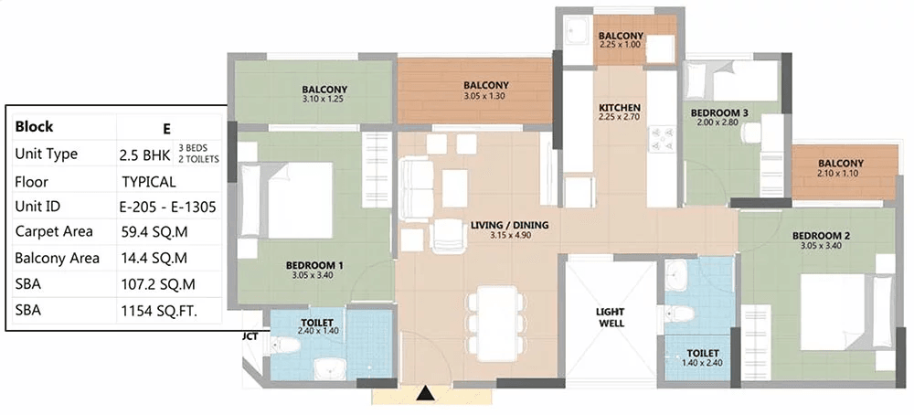 | 2.5 BHK | 1108 - 1211 Sqft | N/A | ₹ 1.15 - 1.24 Cr |