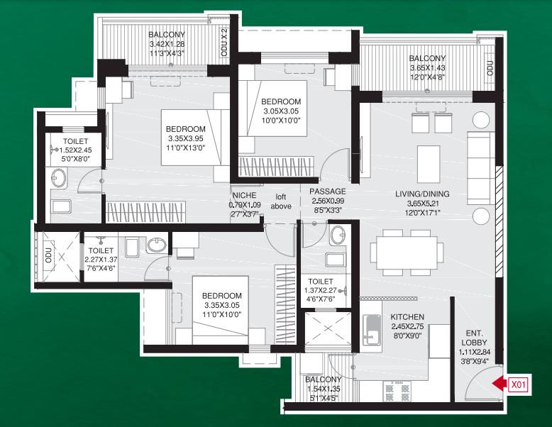 | 3 BHK | N/A | 862 - 1101 Sqft | ₹ 1.34 - 1.72 Cr |