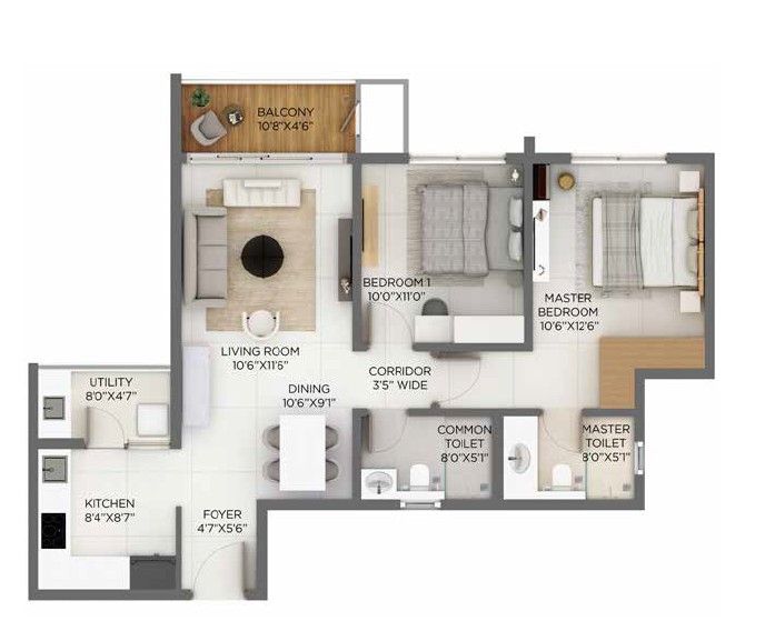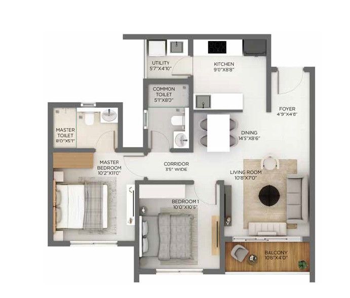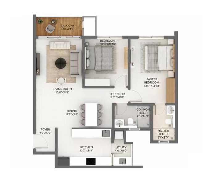 | 2 BHK | 1050 - 1200 Sqft | N/A | ₹ 1.17 - 1.33 Cr |
