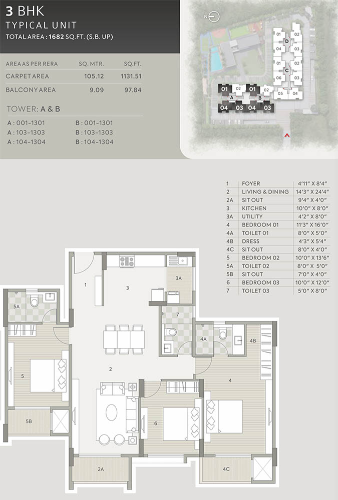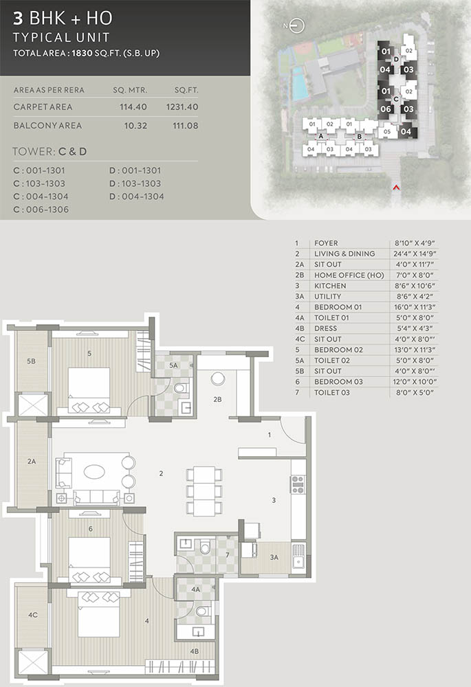 | Unit Type | Saleable Area | RERA Carpet Area | Price |