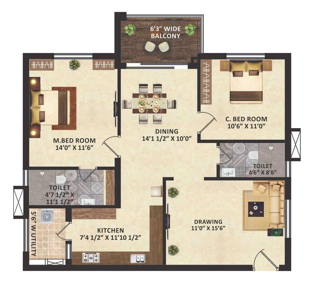 Main Doors, Internal Doors: Engineered frame & Engineered shutter aesthetically designed and fixed with reputed make hardware.