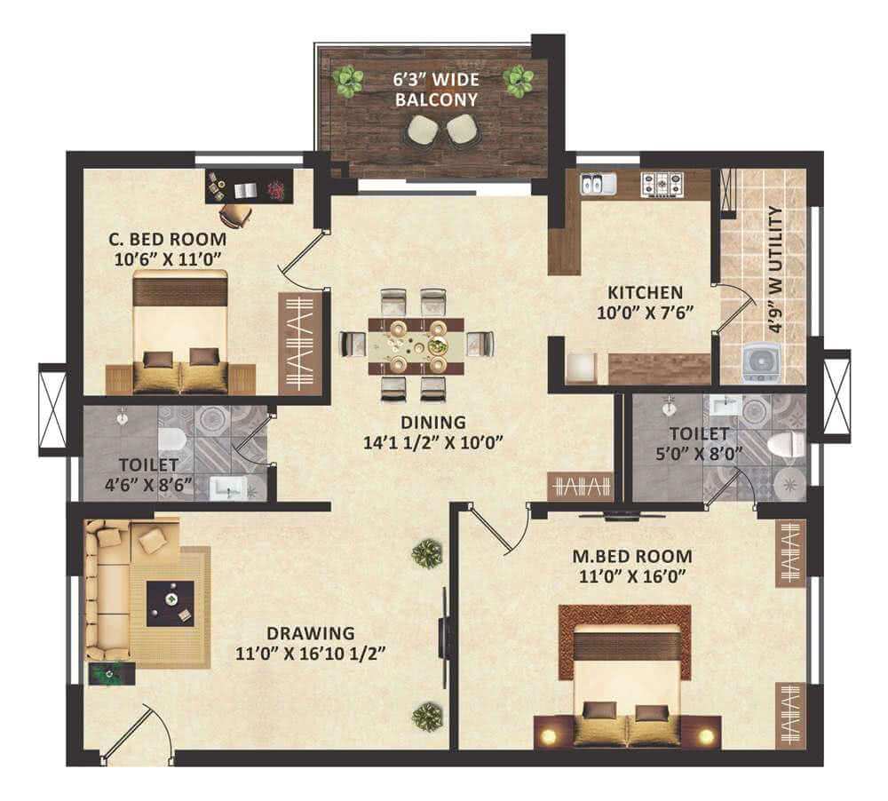 The builder is guaranteed to bring a quality living experience to the community of Tellapur, Osman Nagar, West Hyderabad with brilliant architecture and equivalent lifestyle in GreenMark Mayfair Apartments.