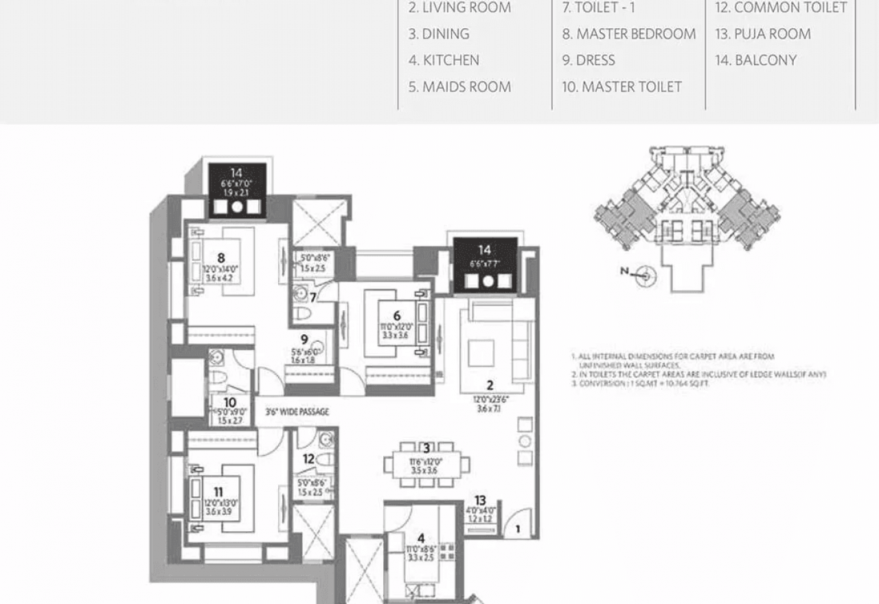 | 3BHK | 1495Sqft | 1495Sqft | N/A |