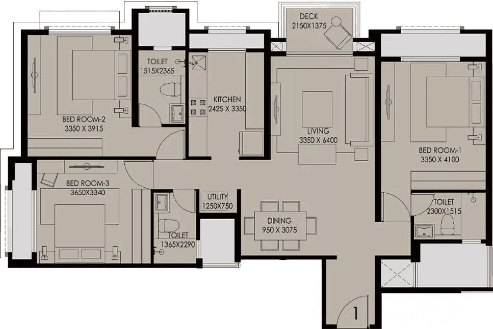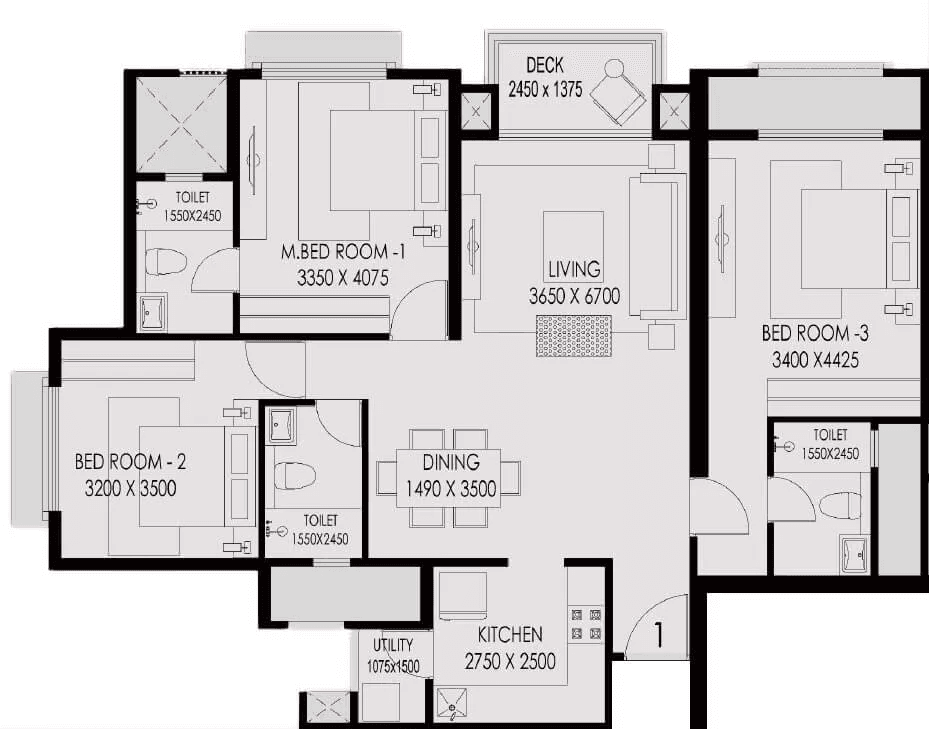 | 3BHK | 1500Sqft | 1500Sqft | N/A |