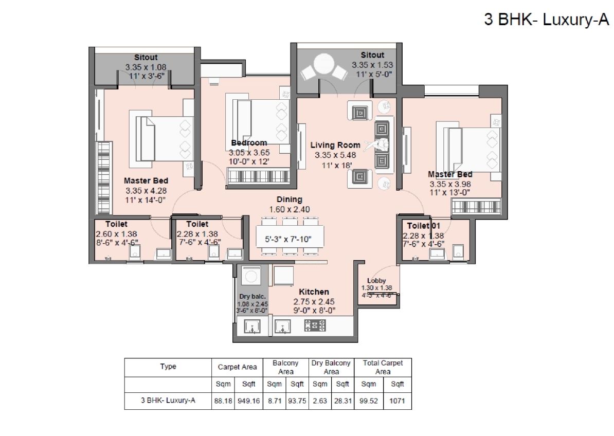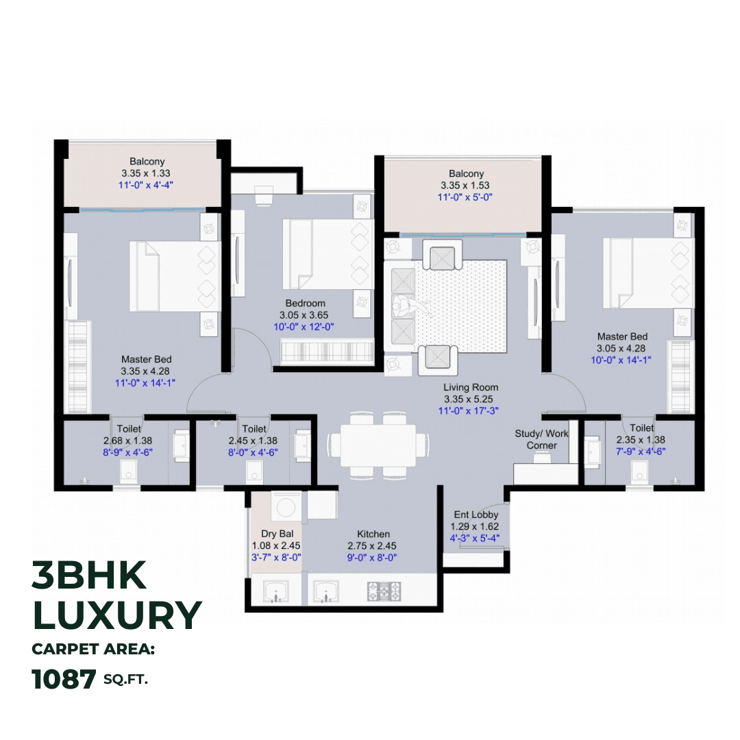| 3 BHK | 797 - 1087 Sqft | N/A | ₹ 93.35 Lacs - 1.27 Cr |