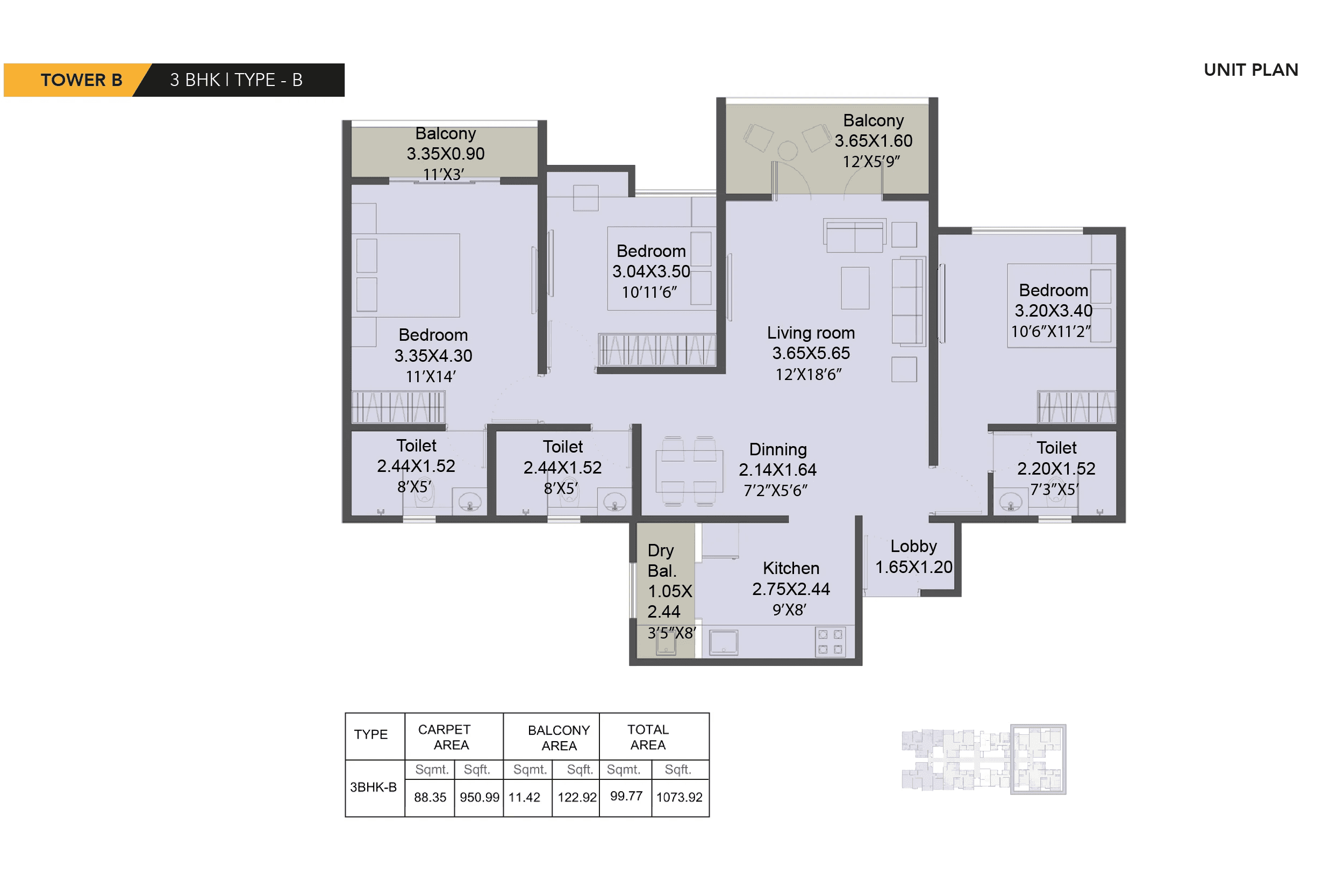 3 BHK N/A 1000 - 1210 Sqft ₹ 1.23 - 1.5 Cr