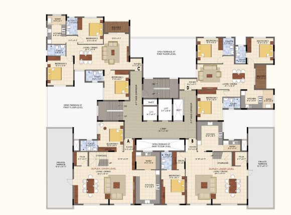 Lift: Elevators of 13 passenger automatic lift will be provided with interior finish in every core