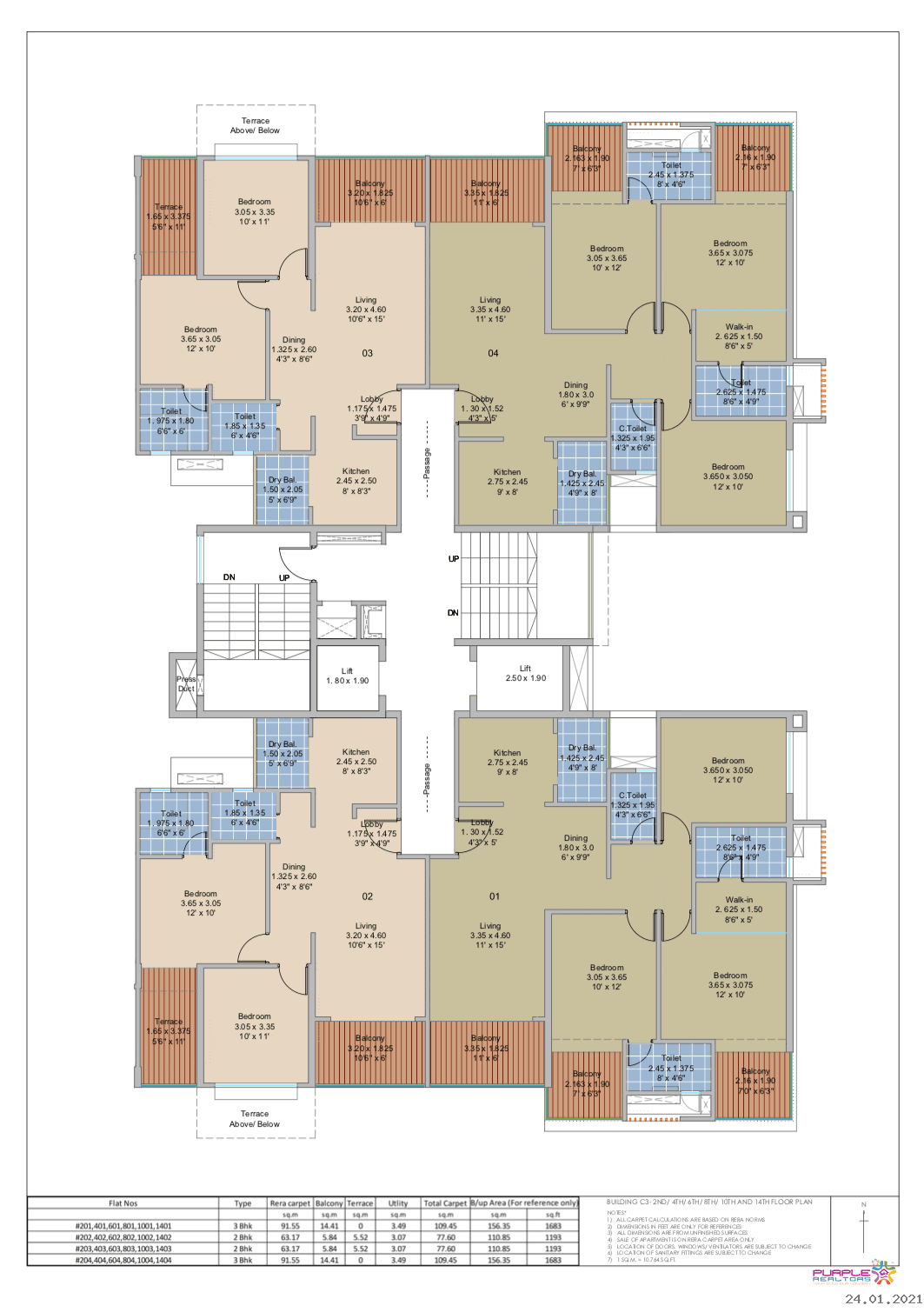 | Unit Type | Saleable Area | RERA Carpet Area | Price |