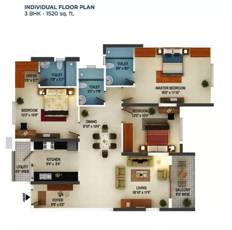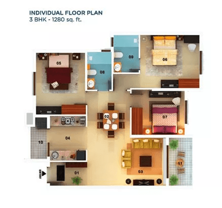 | 3 BHK | 1280 - 1290 Sqft | N/A | ₹ 1.33 - 1.35 Cr |