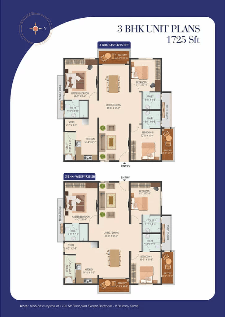 | 3 BHK | 1655 - 1725 Sqft | N/A | ₹ 1.29 - 1.35 Cr |