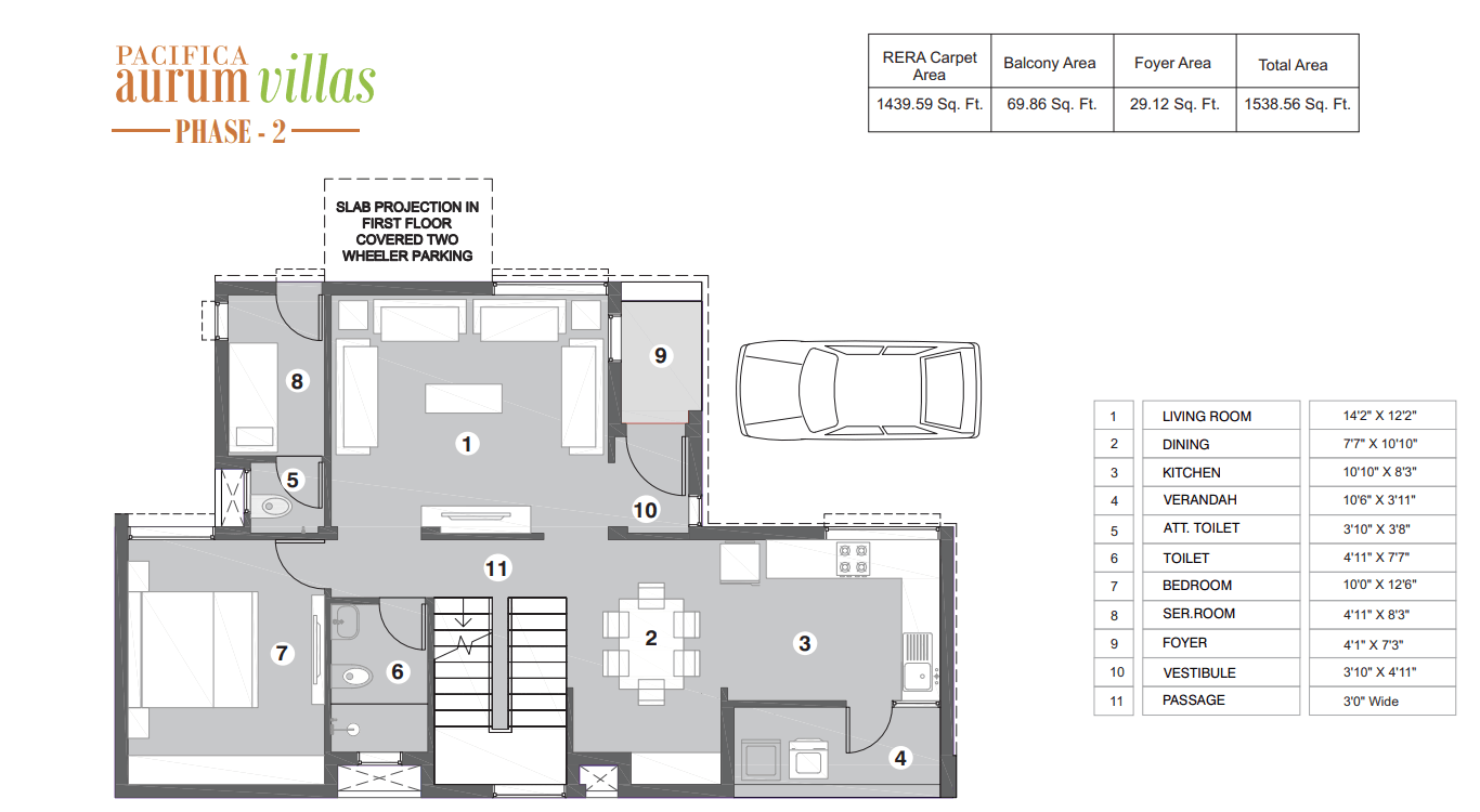 In terms of facilities, Pacifica Aurum Villas is loaded with multiple offerings such as Gymnasium, Power Backup. For families with kids, there is Children's Play Area, School, nearby apart from Swimming Pool, Sports Area. It is a Gated Community. Immerse yourself in a world of sports with provisions for Tennis Court, Cricket Pitch, Squash Court, Skating Rink, Basketball Court, Badminton Court, Cycling & Jogging Track. Residents can make use of ATM, Spa/Sauna/Steam, Library, Restaurants/ Cafeterias, Internet / Wi-Fi, Conference Room, provisions in the project. There is 24x7 Security.