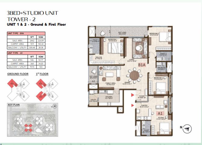 | Unit Type | Saleable Area | RERA Carpet Area | Price |