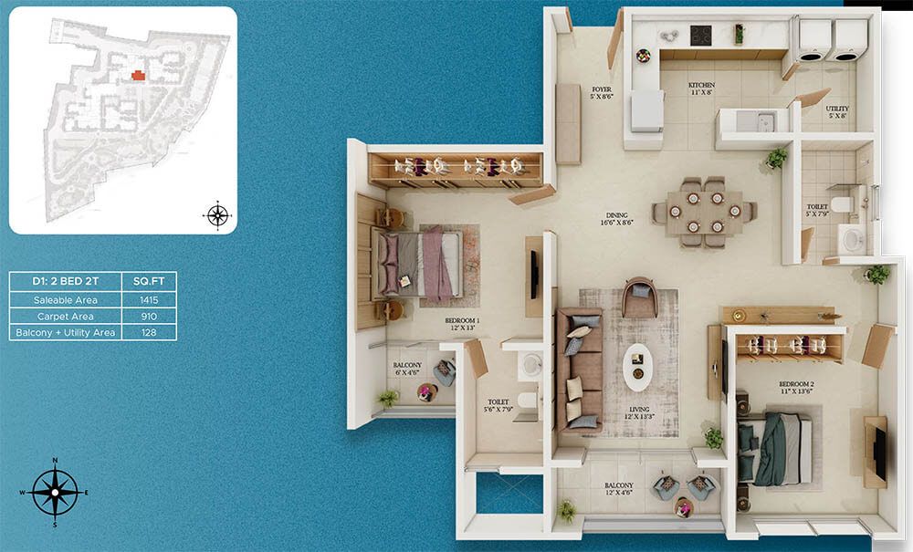 | Unit Type | Saleable Area | RERA Carpet Area | Price |