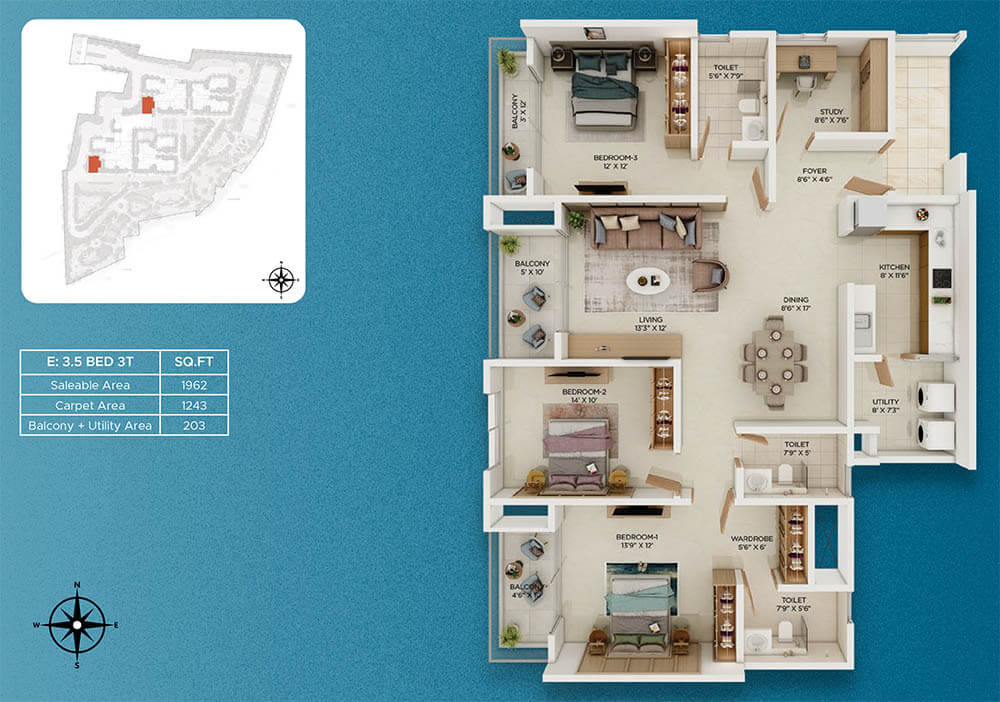 | 3BHK | 1773-1818 Sqft | N/A | ₹ 2.4 - 3.63 Cr |