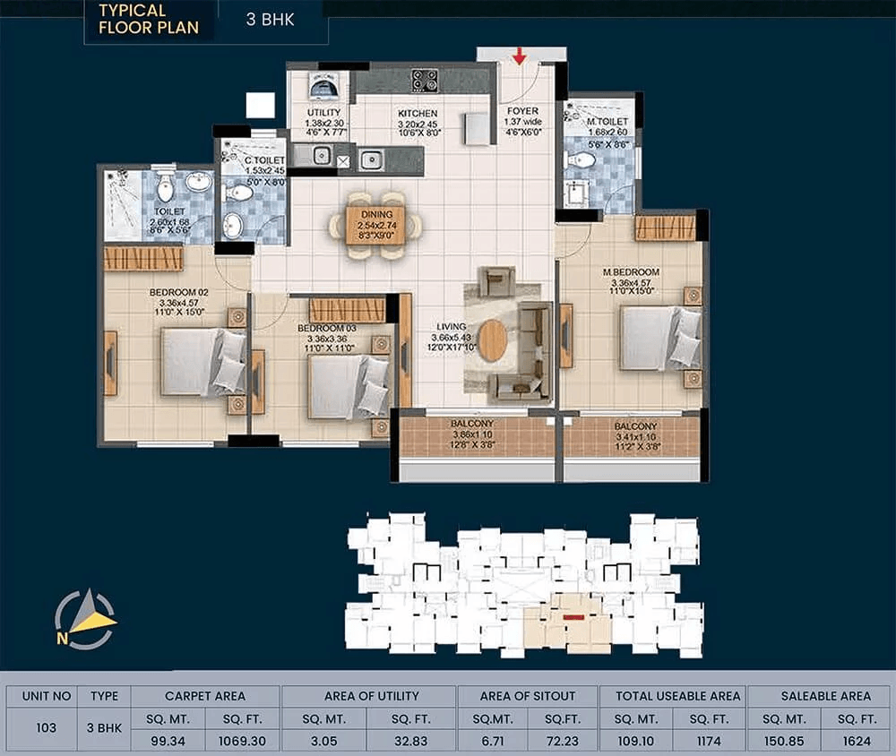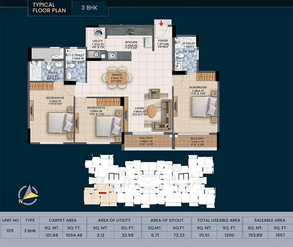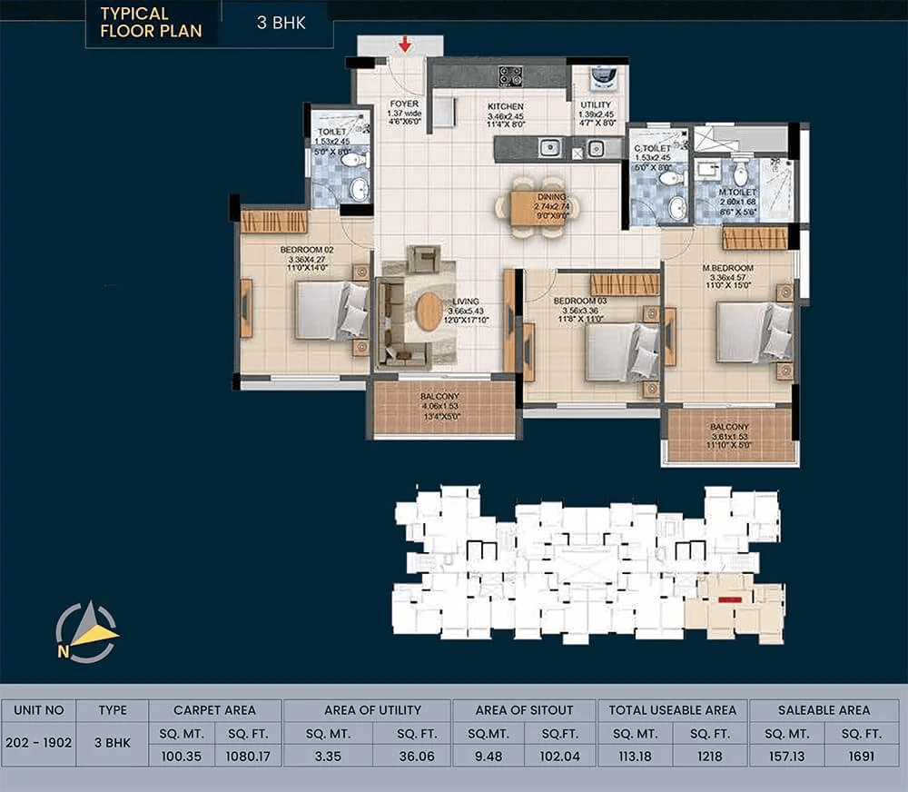 | 3 BHK | 1439 - 1702 Sqft | N/A | ₹ 1.21 - 1.42 Cr |