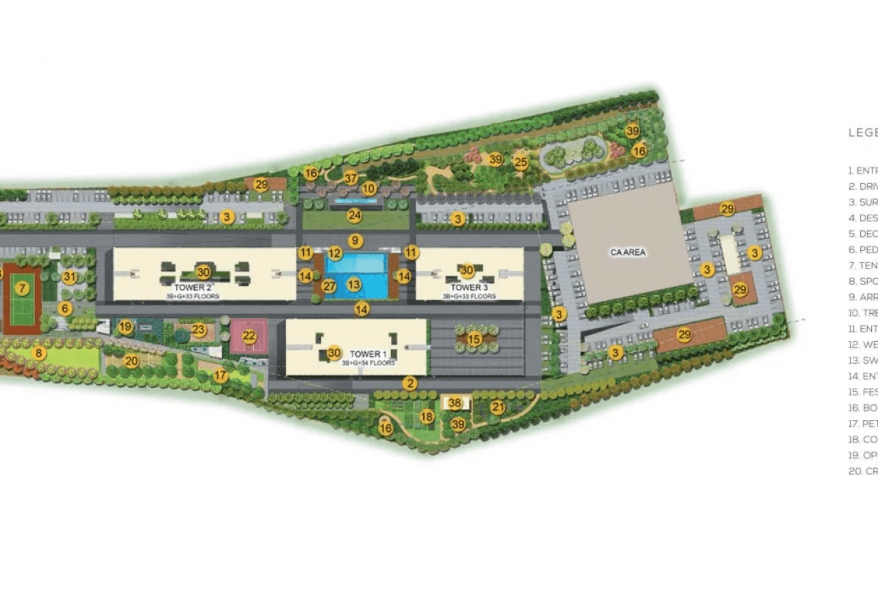 40′ Air Filteration Tower which purifiers the air for radious of around 3 Kms & Beautiful landscapes all around Purva Atmosphere makes it more special & Elite.