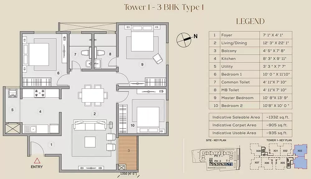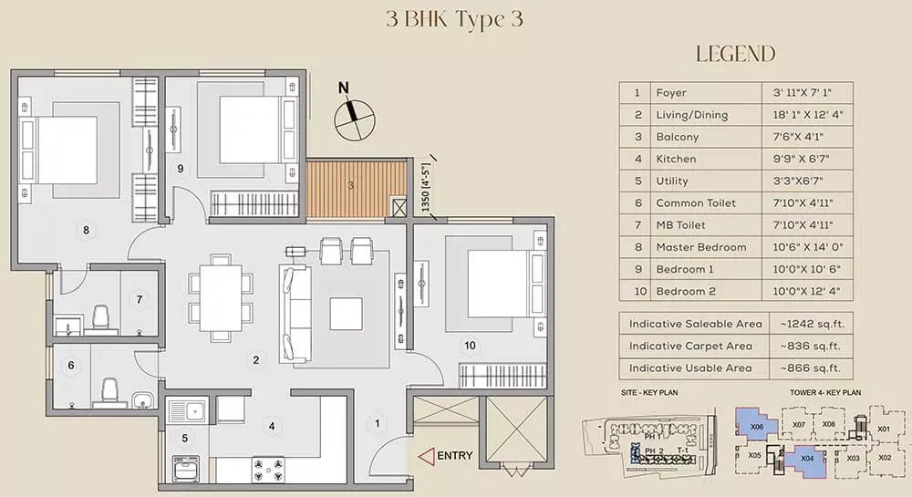 | 3 BHK | 1242 - 1332 Sqft | N/A | ₹ 1.45 - 1.48 Cr |