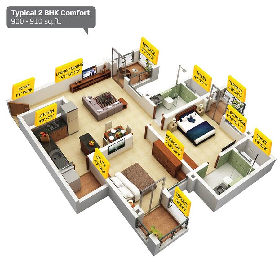 | 2 BHK | 904Sq.Ft | 904Sq.Ft | N/A |