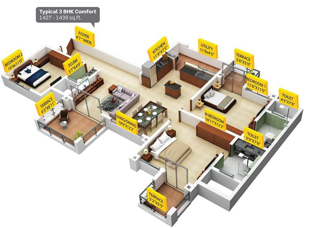 | 3 BHK | 927 Sq.Ft | 927 Sq.Ft | N/A |