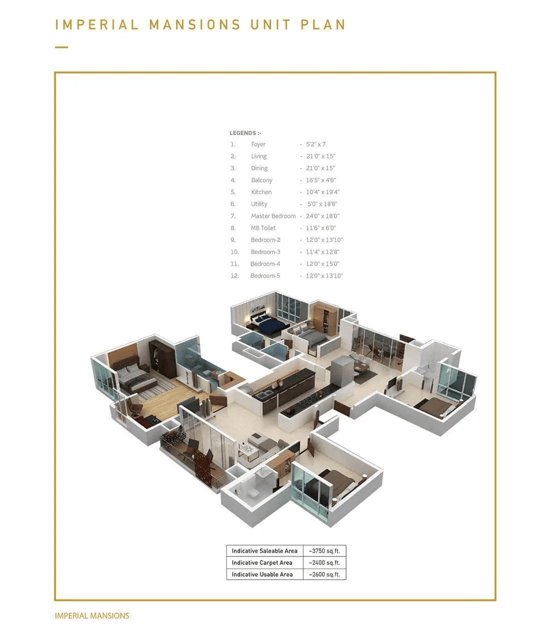 | 5 BHK | 3750-3765Sqft | N/A | ₹ 7.32-7.35Cr |